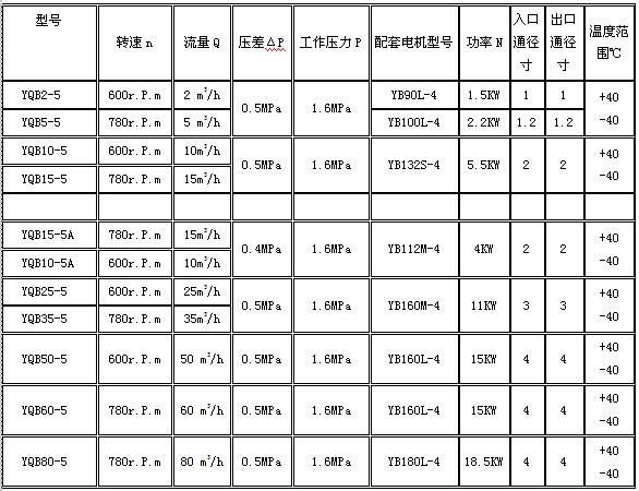 丙烯泵工作性能參數(shù):