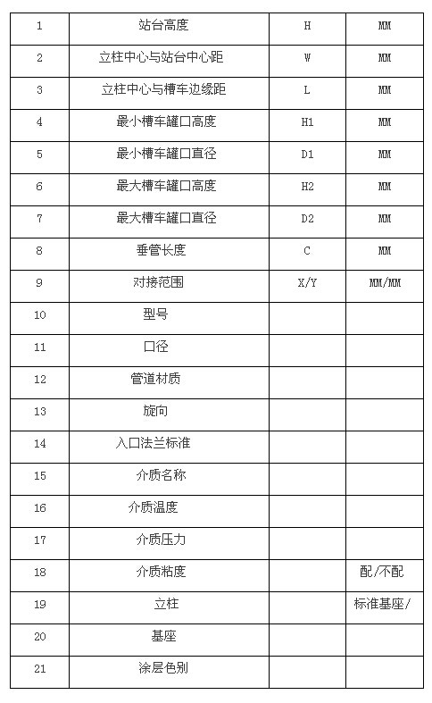 ◆ 可選附件:靜電溢油保護器、液位開關、定量裝車控制系統(含過濾器、流量計、閥門、壓力表、溫度及壓力變送器)等